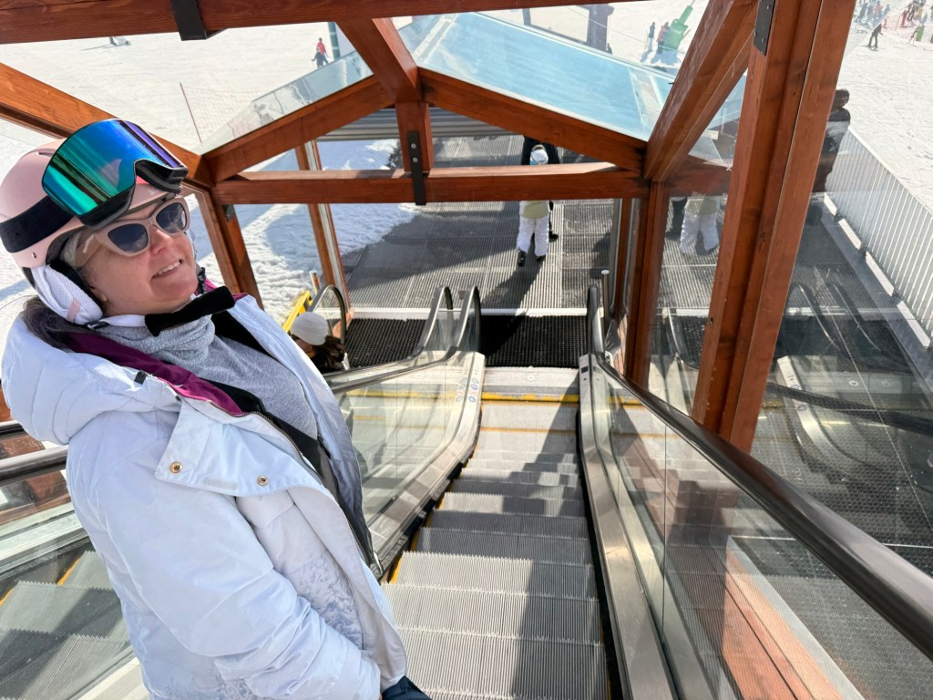 Väl uppe med linbanan fanns det både caféer, restauranger och till och med en rulltrappa.