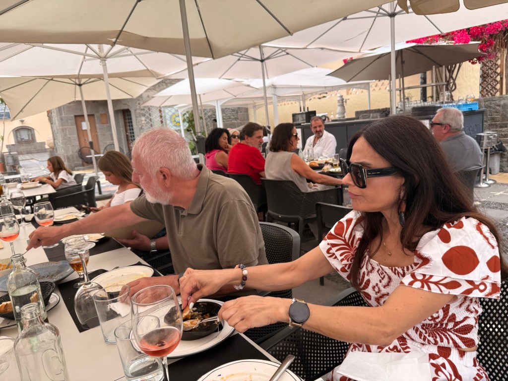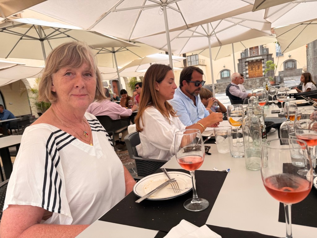 Ja så var man ett år äldre. Vi firade med lunch på Pueblo Canario. Bara Maria och tvillingarna saknades, de hade inte slutat skolan ännu.