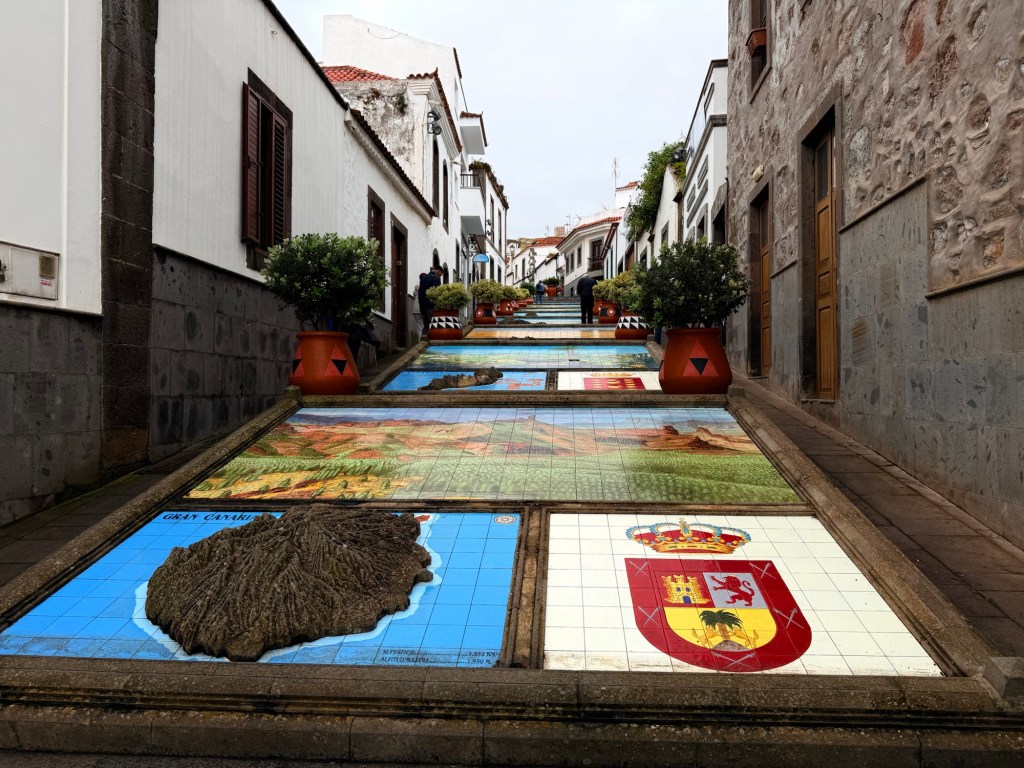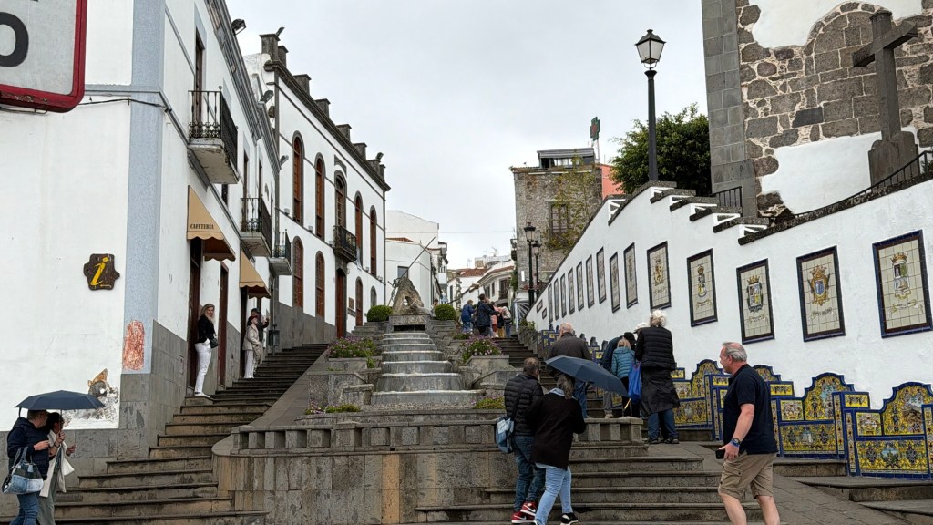 Från Moya tog bussen oss till Firgas där vi naturligtvis besökte den berömda trappan med vattenfall och de fina sofforna med motiv från öns alla kommuner.