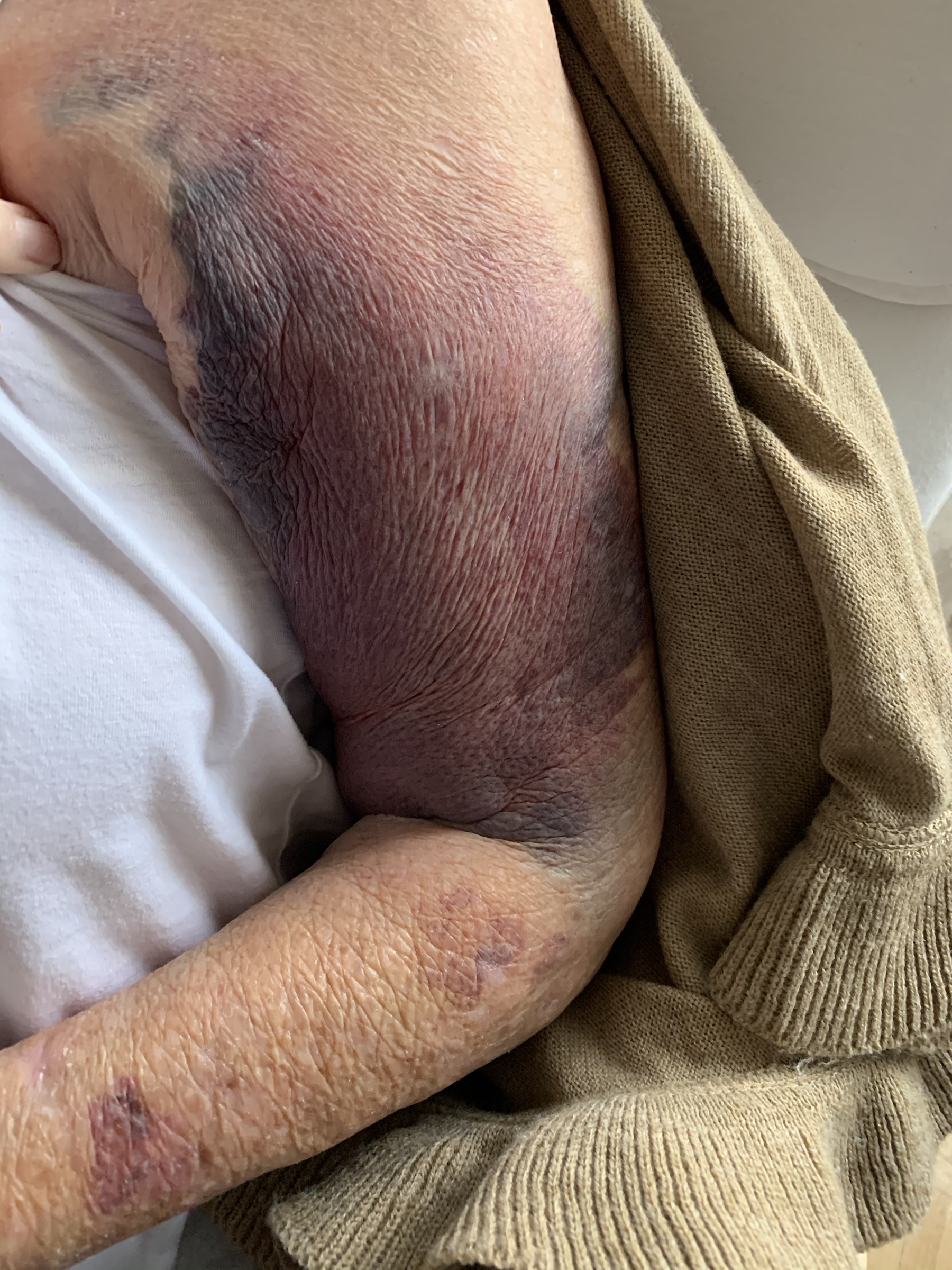 På hemvägen hade jag sällskap med Ria till Catalinaparken där hon tog bussen hem och jag fortsatte hemåt. Men halvvägs hemma stöp jag raklång i marken och tog emot med vänster axel. En snäll kille hjälpte mig upp och efter att ha vilat en stund på en bänk fortsatte jag hem. Maria tog mig till akuten där jag blev röntgad och fick beskedet att det var en spricka i benet nära axeln och jag skulle ta en paracetamol var åttonde timme. Armen gör djävulskt ont och jag kan inte röra den.