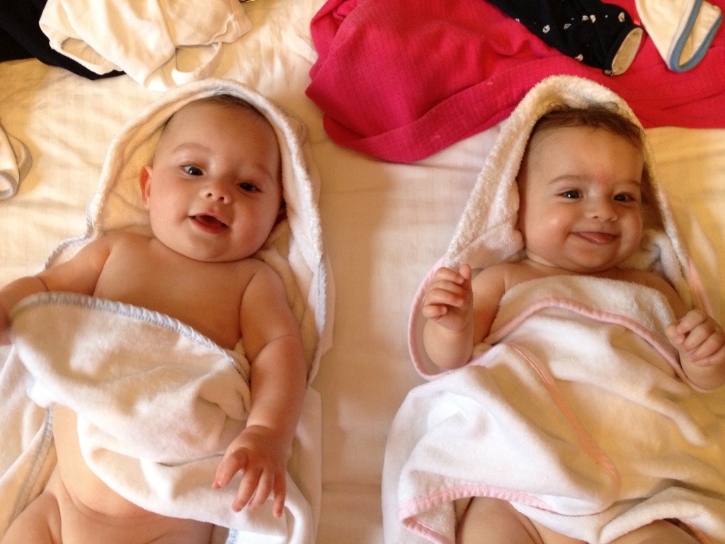 Nybadade tvillingar